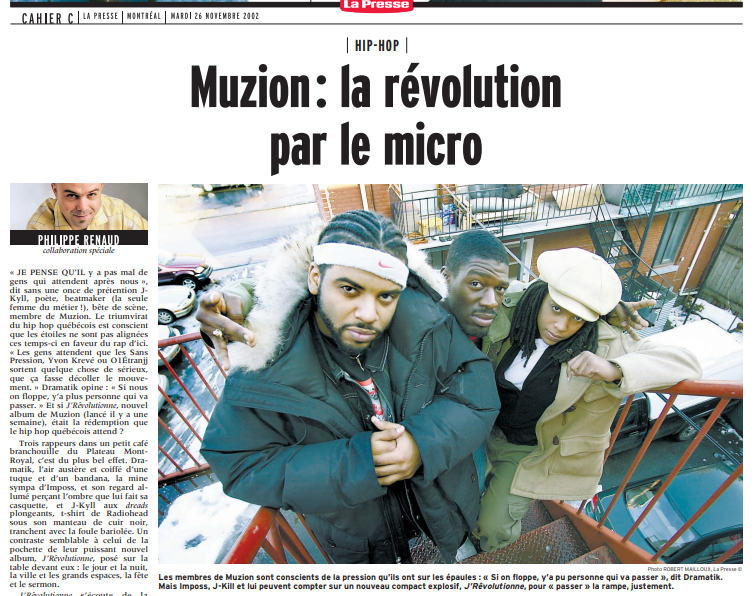Lorsqu’il est question d’albums mythiques du hip-hop francophone, haïtien et québécois produits depuis les dernières décennies, nous nous devons de mentionner « J’Rêvolutionne ». Cet album culte a été réalisé à l’automne 2002. C’est un projet qui invoque et insuffle la créativité, la revendication et une ingéniosité onirique. C’est également le rêve de concevoir une révolution au niveau artistique et musical, si nous prenons le temps de bien disséquer le paradigme de cet album unique en son genre. Spécifiquement, c’est en date du 19 novembre 2022 que J’Rêvolutionne prend le marché artistique d’assaut. Plusieurs fanatiques et nostalgiques des « morniers » se rappellent du lancement de cet album qui fut diffusé en direct sur les ondes de Musique Plus. C’était un lancement spectaculaire, rassembleur, organique et très holistique. Le tout a été archivé par Blaznez sur une chaîne YouTube archivistique. Suite à plusieurs spectacles, événements réalisés au Québec, un Prix Félix décerné en date du 4 novembre 2000, et notamment une tournée à succès en Europe avec NTM, Muzion entame la production de leur second album.